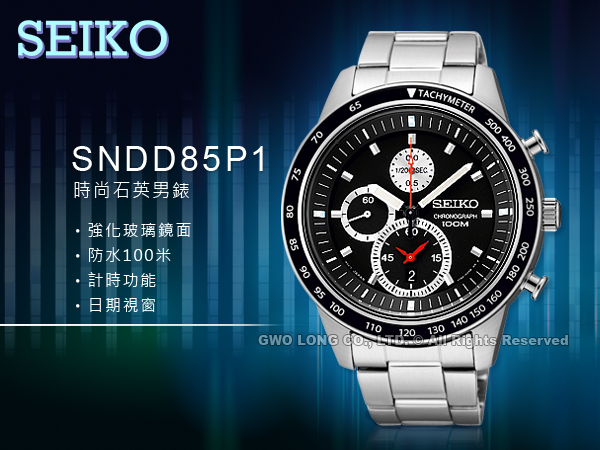 SNDD85P1 SEIKO 時尚三眼計時男錶 不鏽鋼錶帶 強化玻璃鏡面 防水100米 黑面