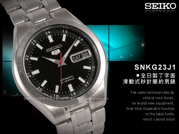 SNKG23J1 SEIKO 全日製丁字面簡約機械男錶 不鏽鋼錶帶 日常生活防水 滑動式秒針