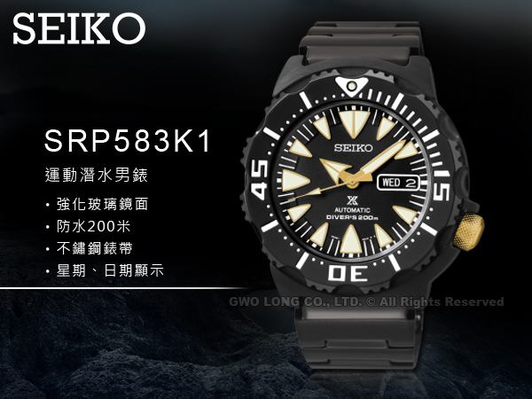 SRP583K1 SEIKO 運動潛水機械男錶 橡膠錶帶 黑 防水200米