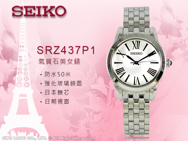 SRZ437P1 SEIKO 氣質石英女錶 不鏽鋼錶帶 日期顯示 防水50米 白色錶面