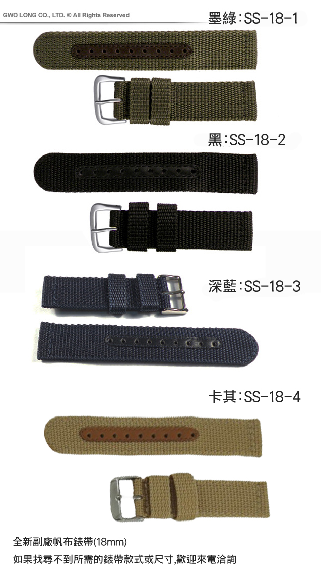 副廠 軍用帆布錶帶 18mm / 20mm (黑/藍/墨綠/卡其)