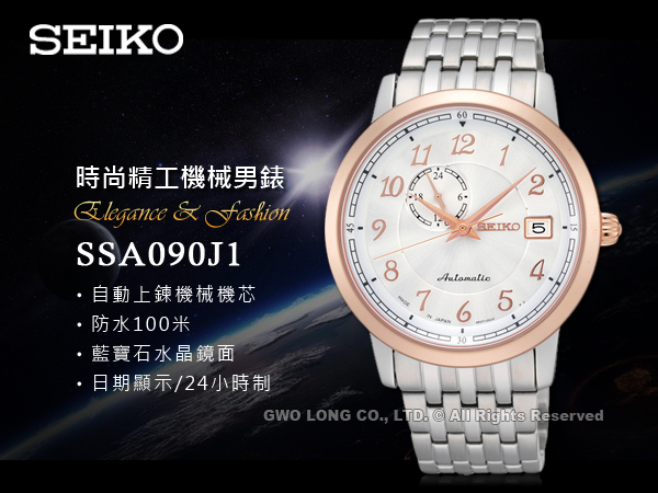 SSA090J1 SEIKO 時尚日製機械男錶 不鏽鋼錶帶 白X玫瑰金面 防水100米 藍寶石水晶鏡面