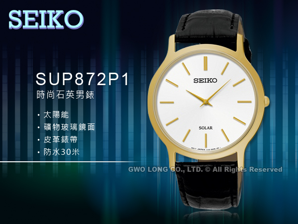 SUP872P1 SEIKO 時尚太陽能石英男錶 皮革錶帶 防水30米 白色錶面 金色錶殼