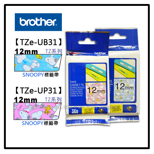TZe-U TZ系列 BROTHER 12mm史奴比卡通護貝標籤機色帶 耗材