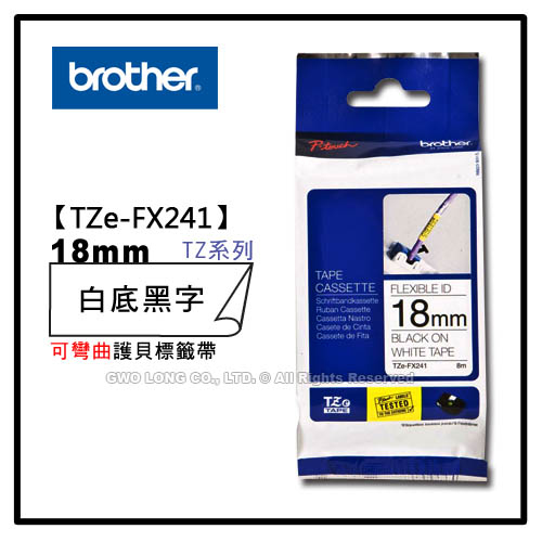 TZe-FX241 18mm BROTHER 白底黑字 纜線可彎曲護貝標籤機色帶 耗材