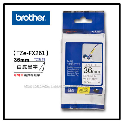 TZe-FX261 36mm BROTHER 白底黑字 纜線可彎曲護貝標籤機色帶 耗材