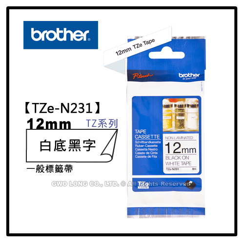TZe-N231 TZe系列 BROTHER 12mm一般標籤機色帶(無護貝) 耗材