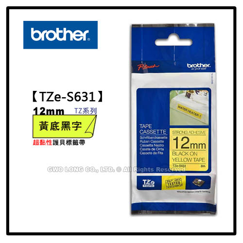 TZe-S631 12mm BROTHER 黃底黑字 超黏性護貝標籤機色帶 耗材