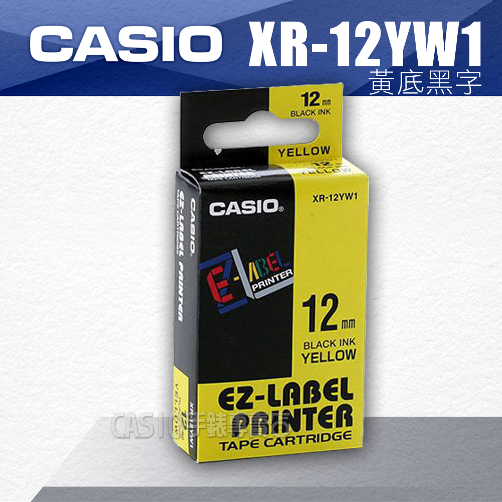 【色帶耗材】CASIO卡西歐 標籤機色帶 XR-12YW 黃底黑字 原廠貨 12mm 全新品