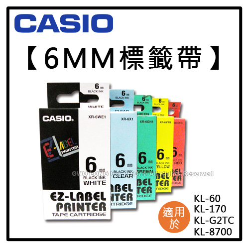 卡西歐專賣店 含稅附發票 CASIO卡西歐 KL-170 標籤機色帶 XR-6 原廠貨 6mm標籤機色帶 耗材